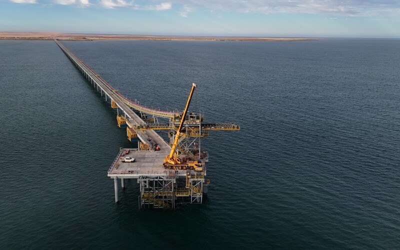 - a piled 2.4 km jetty structure with head-end platform, berthing and mooring dolphins. Construction involved more than 200 steel piles, each up to 30 metres long and weighing a combined 3,800 tonnes.