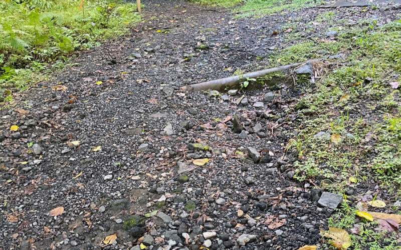 The area alongside the access way will be cleared for 1.5 metres on either side, and obstacles such as large rocks or tree roots will be removed. Once each section is cleared, the team will prepare the road surface for boxing and concrete.