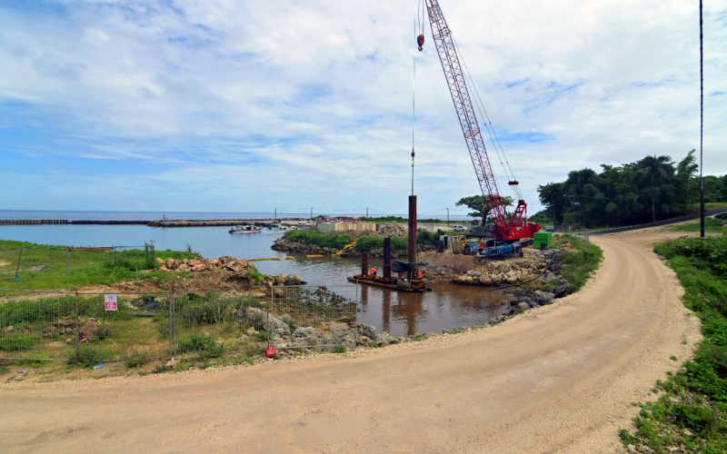 A temporary causeway is in place to maintain connections between the Port and the community while the new bridge is constructed.